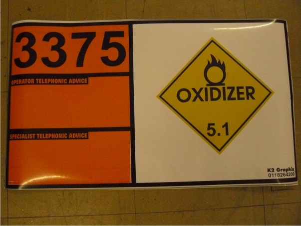 Hazchem placards are printed onto vinyl stickers or chromadek boards, safety signage warning stickers, to the transport industry.